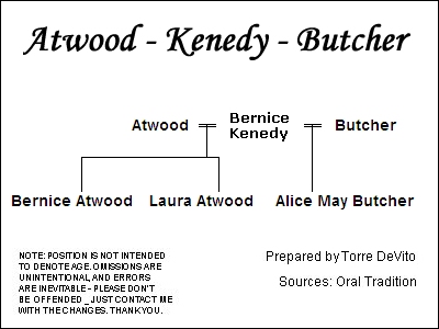 View: Atwood, Kenedy & Butcher Genealogy Message BoardMy Maternal Grandmother's maiden-name was Atwood, her Mother's maiden-name was Kenedy (with one "N"). Her Mother remaried a man named "Butcher" and all my relatives from Grandma's side of the family are decendants of the Atwood's or Butcher's.